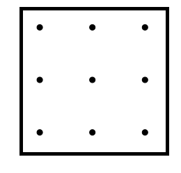 Gegeben ein 3x3 Gitter in einem Quadrat. Zeichne zwei weitere Quadrate, so dass je zwei Zentren der 9 Zellen separiert sind.